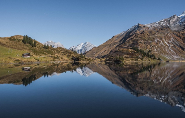 skiing slopes and hiking routes. Our next stop was a small lake, Trüebsee settled below Titlis and accessible